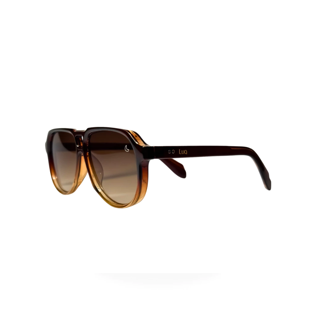 Com sua armação clássica e acabamento em tom mocha mousse, este modelo aviador une o clássico ao moderno, proporcionando um visual sofisticado e versátil. As lentes degradê oferecem proteção UV400, garantindo conforto e segurança para seus olhos sob o sol intenso.