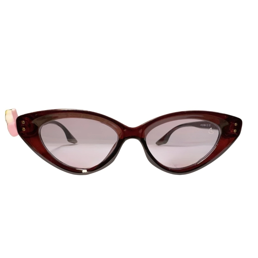Com sua armação vinho translúcida, esse modelo traz elegância e personalidade, enquanto o formato cat eye valoriza o olhar e destaca o rosto.